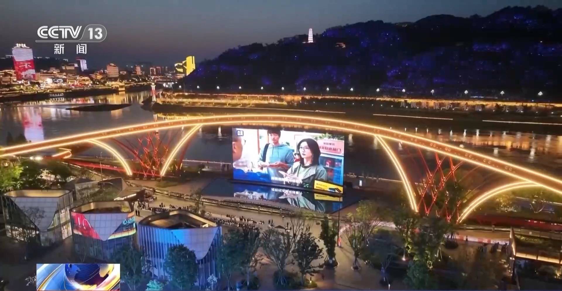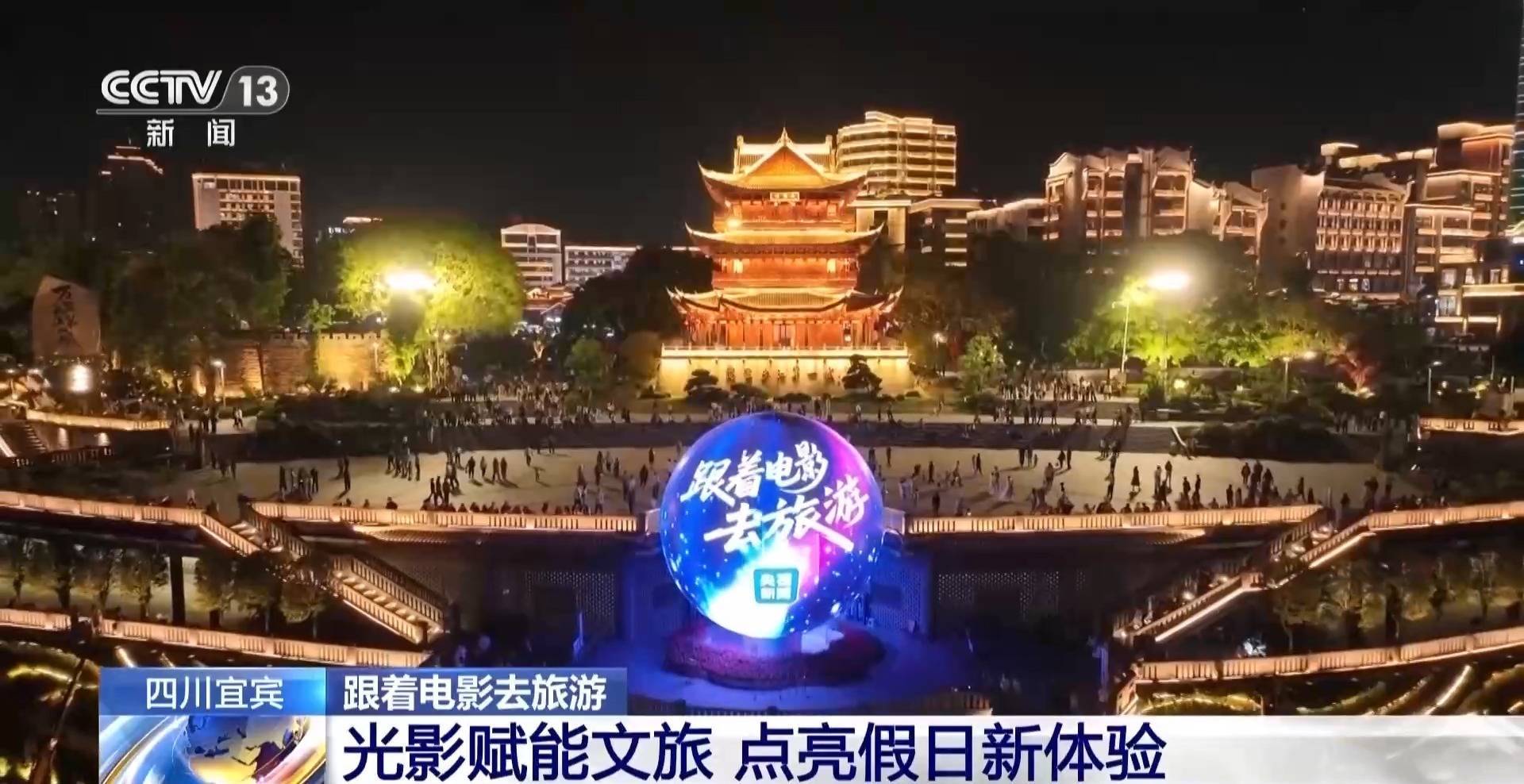 rr总台记者 王玉龙:在四川宜宾的水幕广场,水幕电影大屏正在滚动播放五一档电影预告片。此刻,宜宾的城市地标也已经点亮主题光影,璀璨光影与三江夜景交相辉映,氛围感拉满。